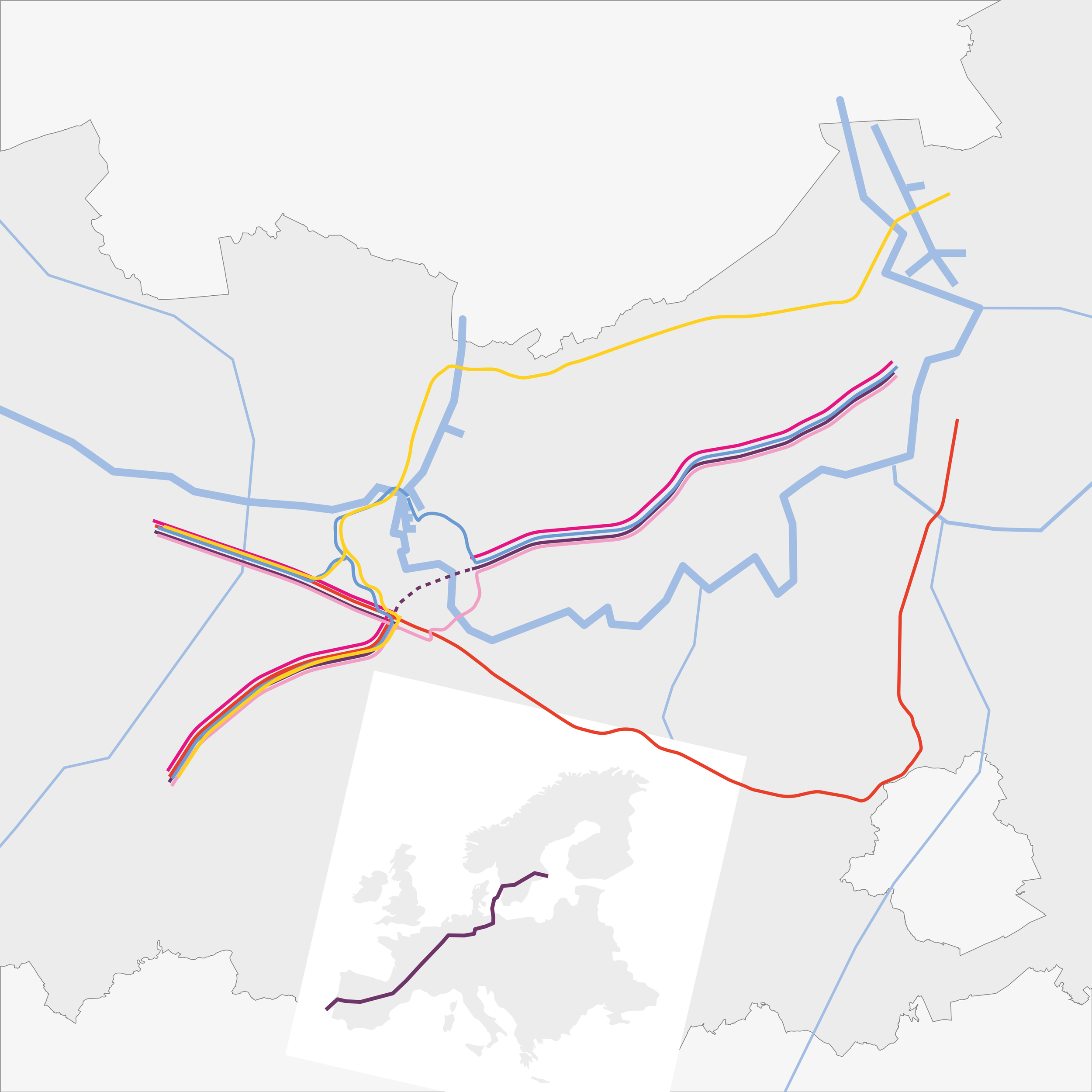 De drie thema’s worden geanalyseerd op drie schaalniveau’s: Gewestelijke schaal (tot Europese schaal), Regionale schaal en Lokale schaal of de schaal van de wijk. Om de geïntegreerde benadering in de praktijk te brengen, maakt het studieteam gebruik van een onderzoeksmatrix. Alle informatie die tijdens de Verkenningsfase verzameld wordt, krijgt hierin een plek.